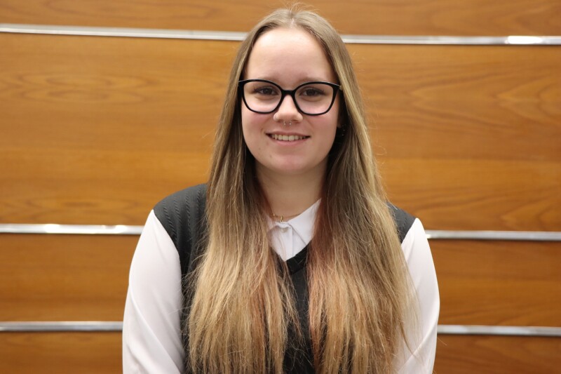 Viktória je študentkou piateho ročníka bilingválneho odboru. Od prvého ročníka má vynikajúci prospech a vo svojej triede patrí medzi jej lídrov. Je veľmi priateľská, komunikatívna, zodpovedná a vždy ochotná pomôcť svojim spolužiakom. Svoj organizačný talent využíva pri triednych i školských aktivitách. Zúčastňuje sa školských súťaží zameraných na ekonomiku a účtovníctvo, ako je mladý účtovník. V roku 2025 absolvovala odbornú stáž Erasmus plus na Malte, kde mohla preukázať svoje výborné znalosti angličtiny. Znalosť anglického jazyka si na anglickej olympiáde overila opakovane. Rada číta a jej vášňou je cestovanie, využije každú príležitosť k vycestovaniu do zahraničných metropol. V budúcnosti plánuje študovať ekonomiku na vysokej škole v Brne.