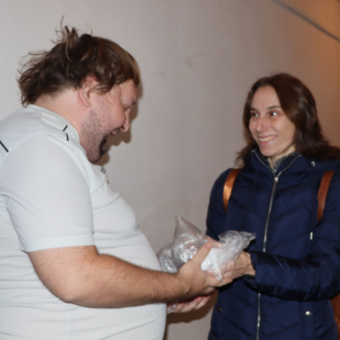 Zabalenú večeru doručili dobrovoľníci na Hurbanovu ulicu v sprievode terénnej sociálnej pracovníčky Silvii Sekerešovej z mestského úradu. Potešilo sa jej viacero klientov nocľahárne, ktorí sem prichádzajú v podvečerných hodinách prenocovať, obdarovaní boli aj klienti útulku. Pre viacerých z nich to bolo prvé teplé jedlo po dlhšom čase.
