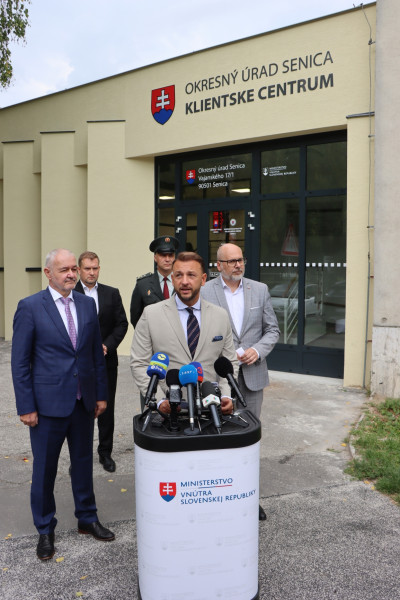 Slávnostného otvorenia KLIENTSKEHO CENTRA so sídlom v budove Okresného úradu Senica sa v piatok 5. septembra zúčastnili minister vnútra Matúš Šutaj Eštok a štátny tajomník MV SR Michal Kaliňák. Spoločne s prednostom Okresného úradu v Senici Vladimírom Kocourkom, primátorom mesta Martinom Džačovským a riaditeľom Okresného riaditeľstva Policajného zboru SR v Senici Jurajom Adamovičom prestrihli pásku a prezreli si zmodernizované priestory bývalej zasadačky úradu.